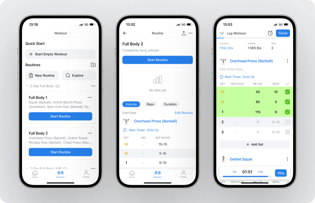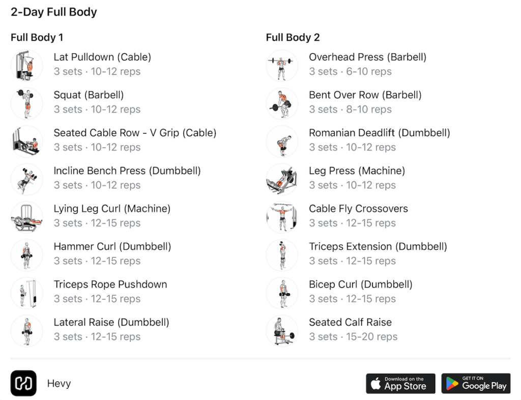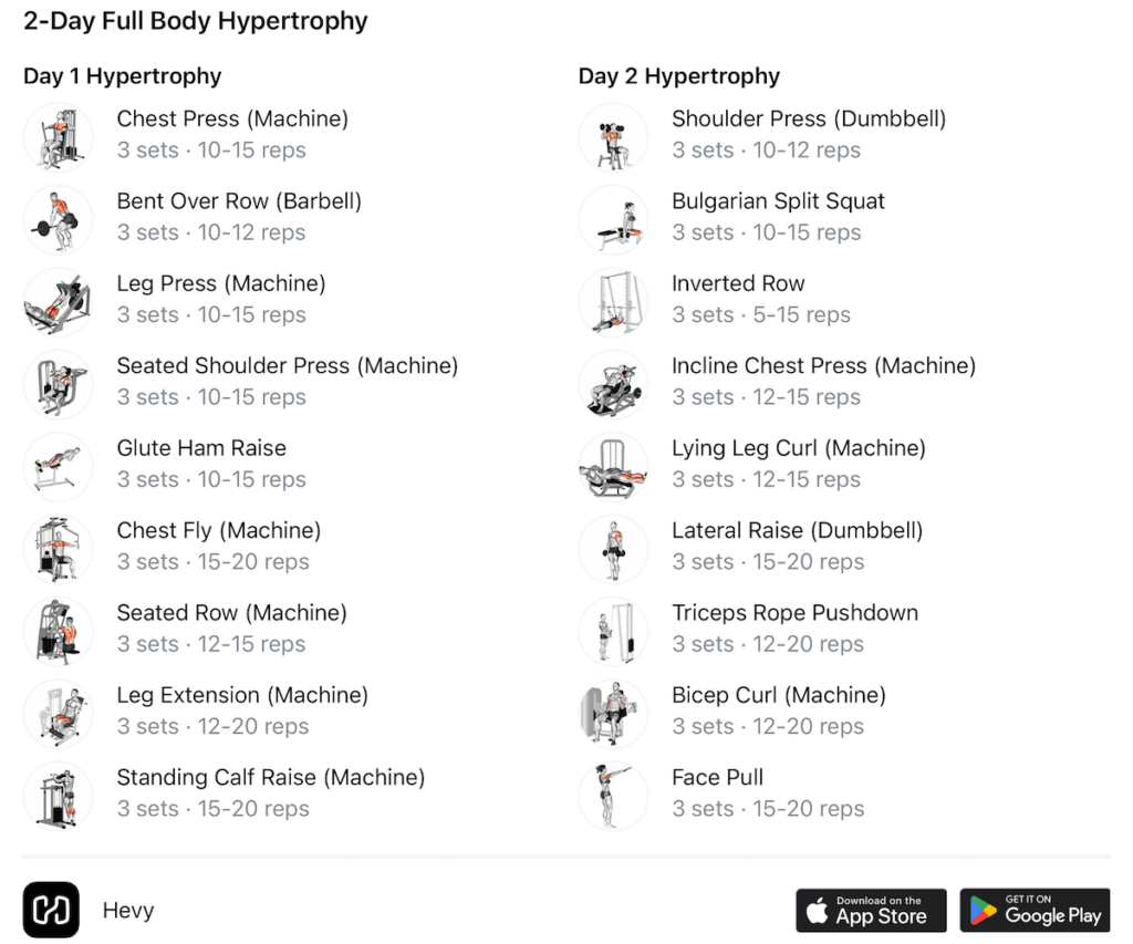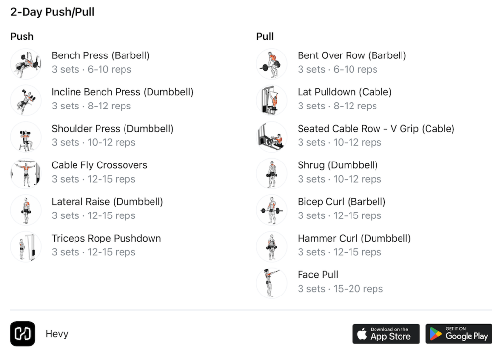 Create your 2-day split routine with Hevy or save any of the above programs to your profile and start logging them.