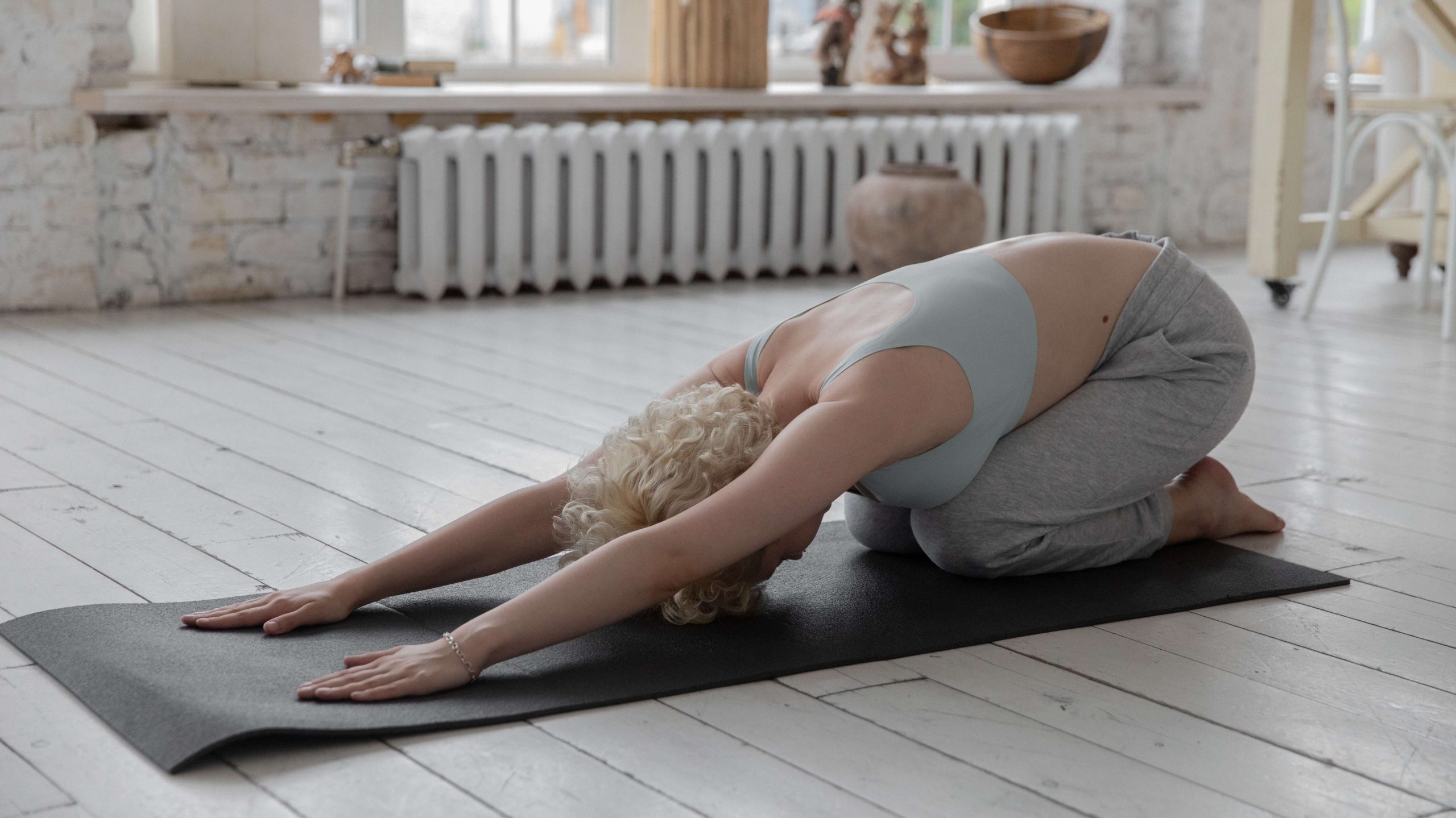 Child’s Pose With Arms Extended On Fingertips