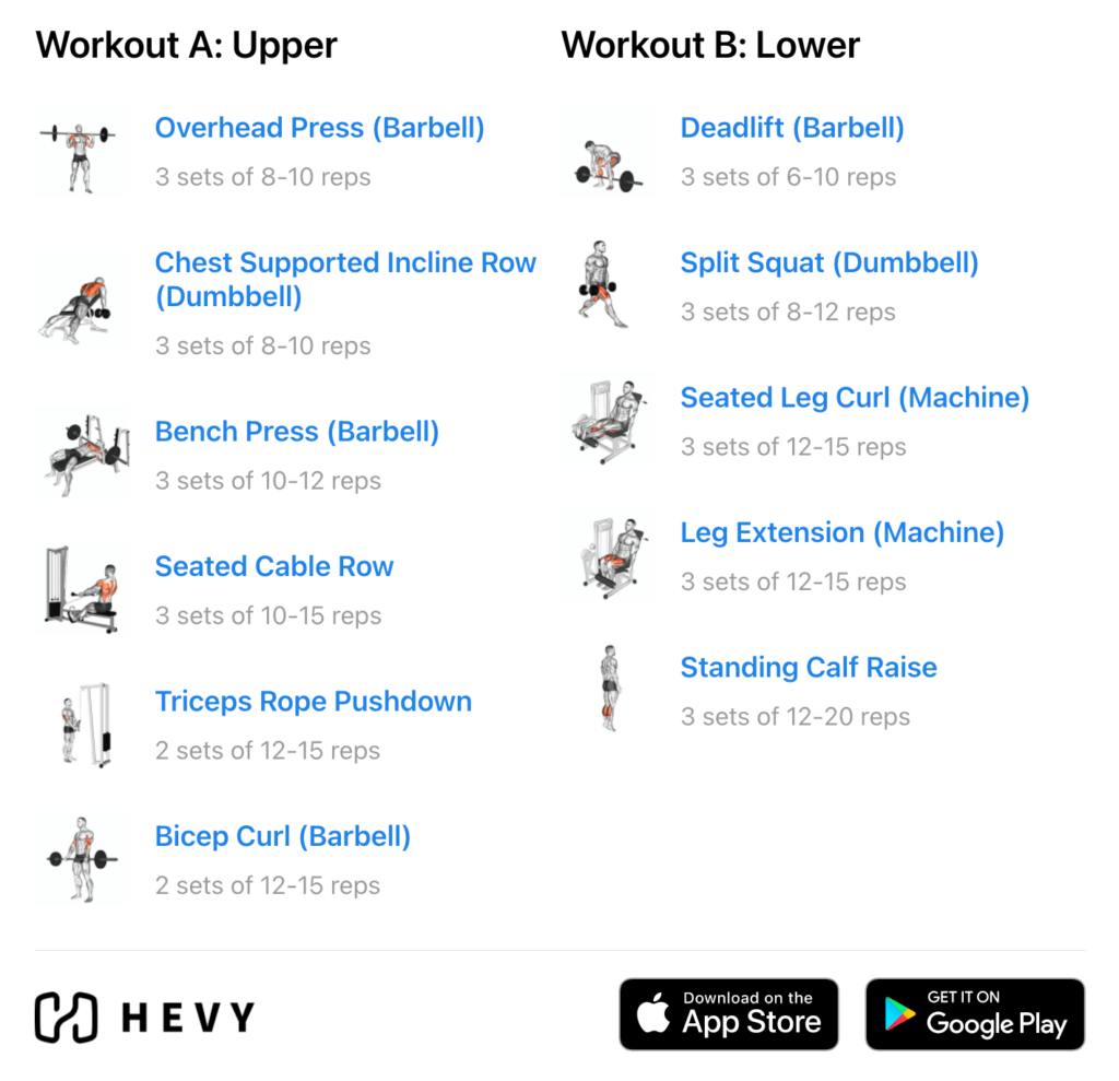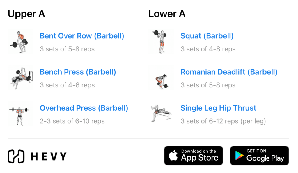 If the full-body split isn’t your cup of tea, or if you want to train a bit more frequently, a modified upper/lower routine can work great for strength. Before we wrap up this guide, I’d like to say something about workout plans: