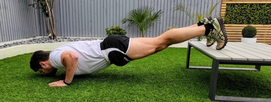 The decline push-up is a fantastic bodyweight exercise that emphasizes your upper chest and is a great exercise to add to an upper chest workout. Also, because your lower body is at a higher position, you have to press a higher percentage of your body weight, making the movement more challenging.