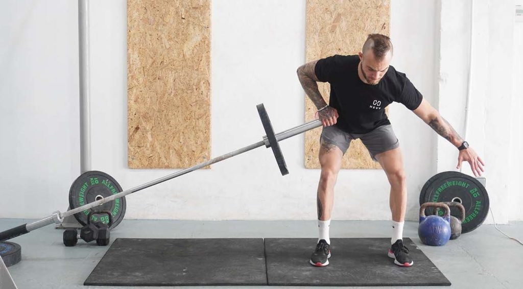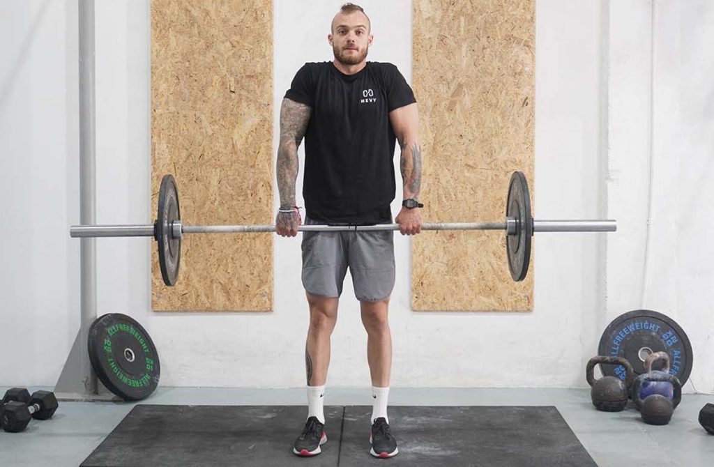- Lift the barbell off the floor.
