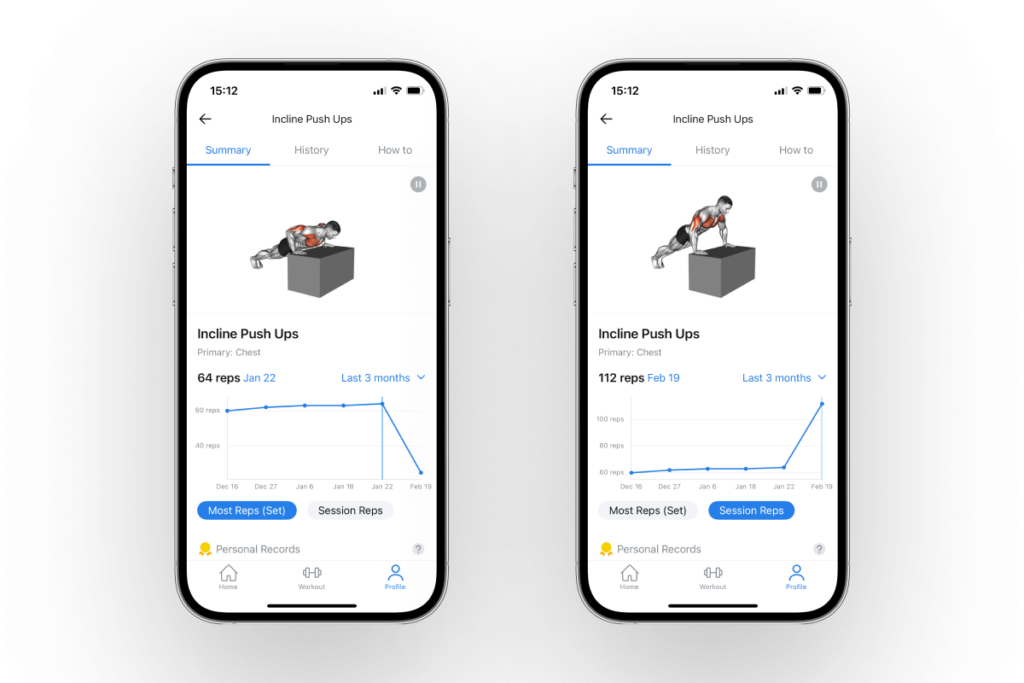 For instance, let’s say you’re doing incline push-ups at home. You can start with five sets of 10 reps and aim to do more over time. To get a complete picture, track your best set performance and the total number of reps per workout.