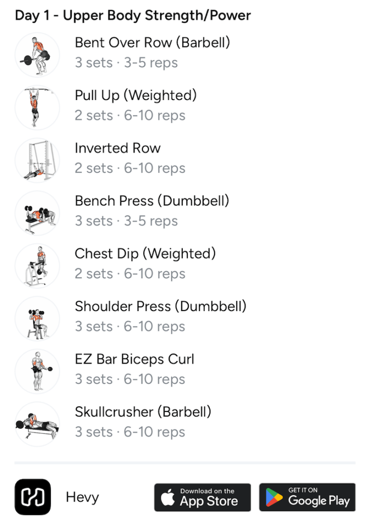 Before you go, download the Hevy app to log your PHAT workouts and track your progress on each lift you want to improve.