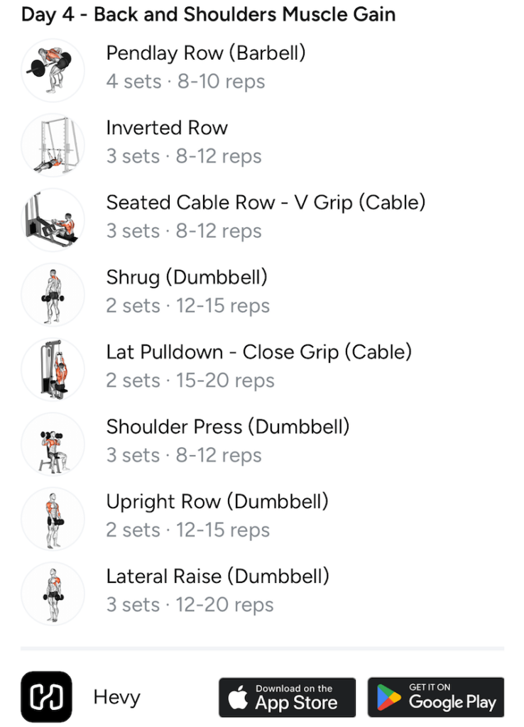 | Day 4 – Back and Shoulders Muscle Gain | ||