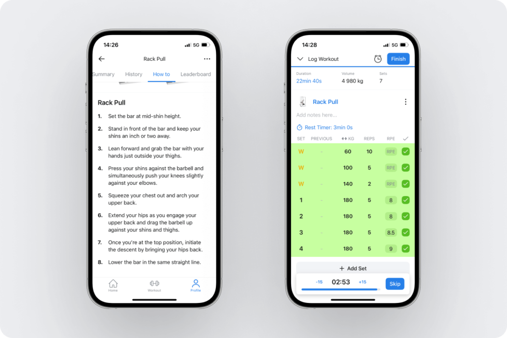The Hevy app’s exercise library features sumo deadlifts and 400+ other exercises, including pull movements that train the lower body. Each movement comes with step-by-step instructions and a demo animation. Learn how to add exercises to any workout and what programming options you get.