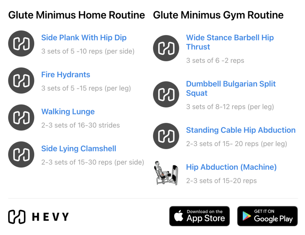 Create your own gluteus minimus workout with Hevy, and track your progress – for free