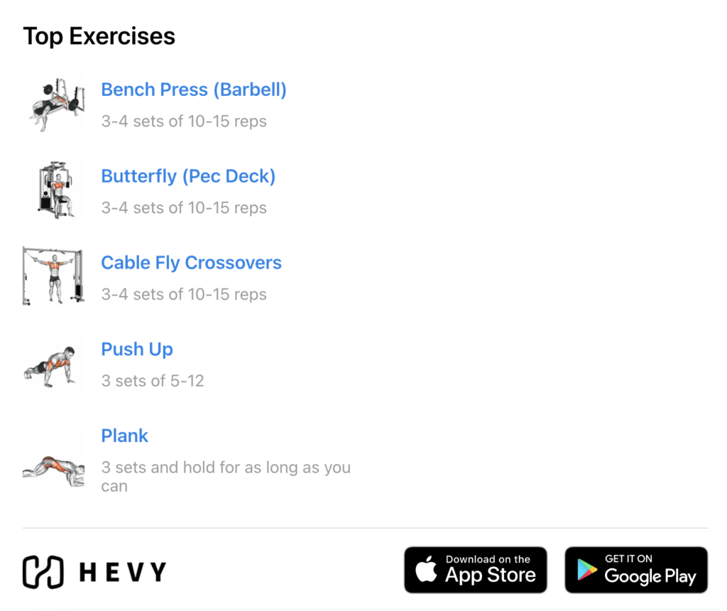 Create your own chest workouts with Hevy, and track your progress – for free.