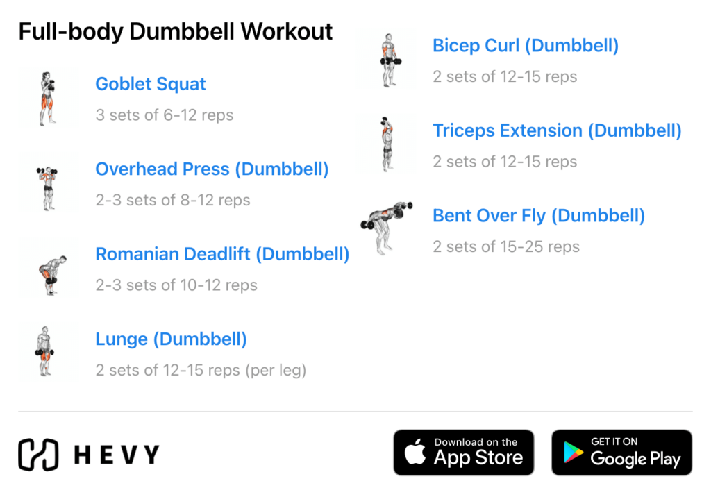 Create your own full-body workouts with Hevy, and track your progress – for free.