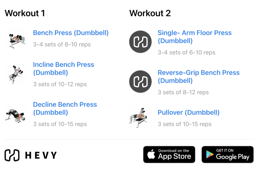 Create your own dumbbell chest workout with Hevy, and track your progress – for free